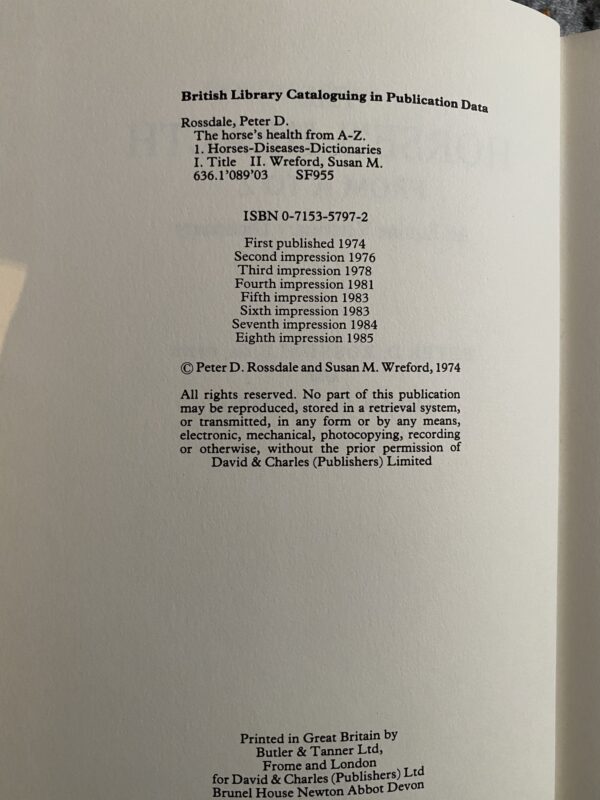 Descriptions of diseases and conditions are followed by the recommended treatments, and drugs are listed under their chemical composition as well as under their trade names. Scientific names are cross-referenced under their common equivalents. Includes a list of veterinary associations and relevant publications, and an appendix giving British and American drug manufacturers.
