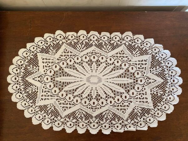 Lovely white lace cloth, approx measurement 61cms x 35cms. Used condition.