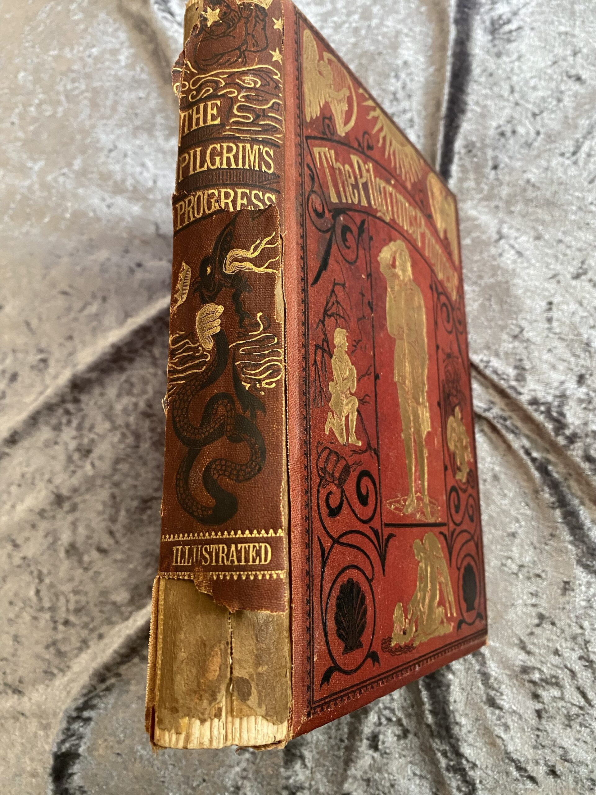 Outside cover of spine very damaged as shown in photos.